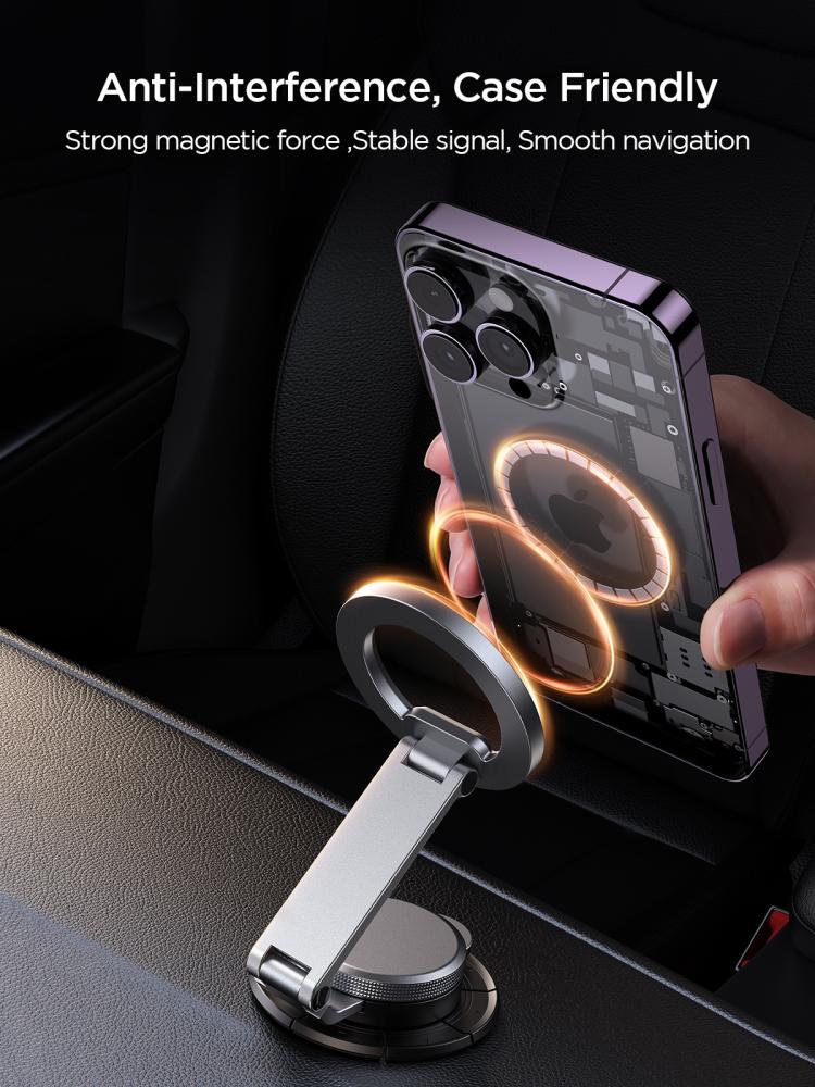 * دعم تقنية الماج سيف: تتميز القاعدة بقوة تثبيت الماج سيف، مما يسمح بتثبيت الهاتف الجوال بأمان واستقرار تام. لن تعاني من الهاتف الذي يتحرك أو يتدحرج أثناء القيادة.
