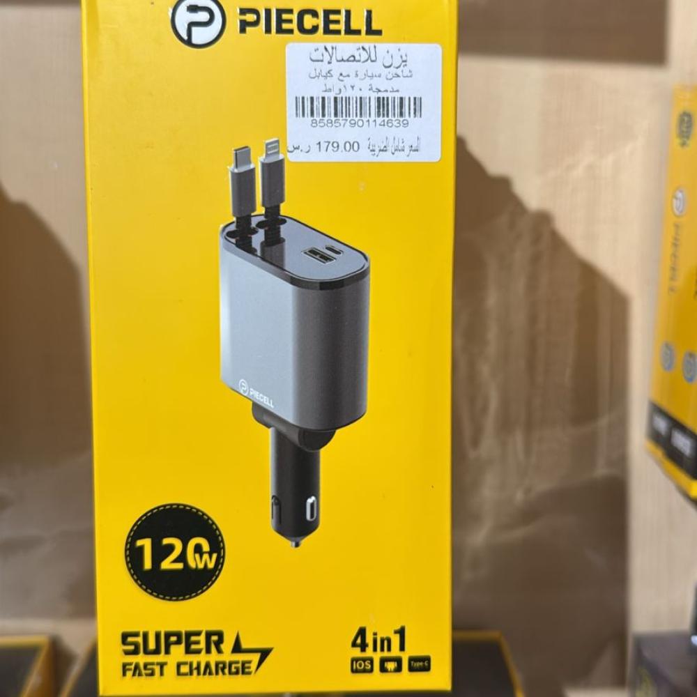 شاحن سيارة بايسل منفذين مع 2 كيبل مدمج ، 120 واط ، 4 في 1 ، PIECELL